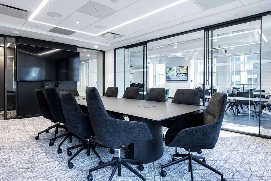 Finaly was thrilled to test our finish skills in the creative use of mixed materials – custom-cut stone flooring alternating in honed and polished finishes are softened by broadloom carpet inserts, acoustical felt walls and sustainable bamboo panels.